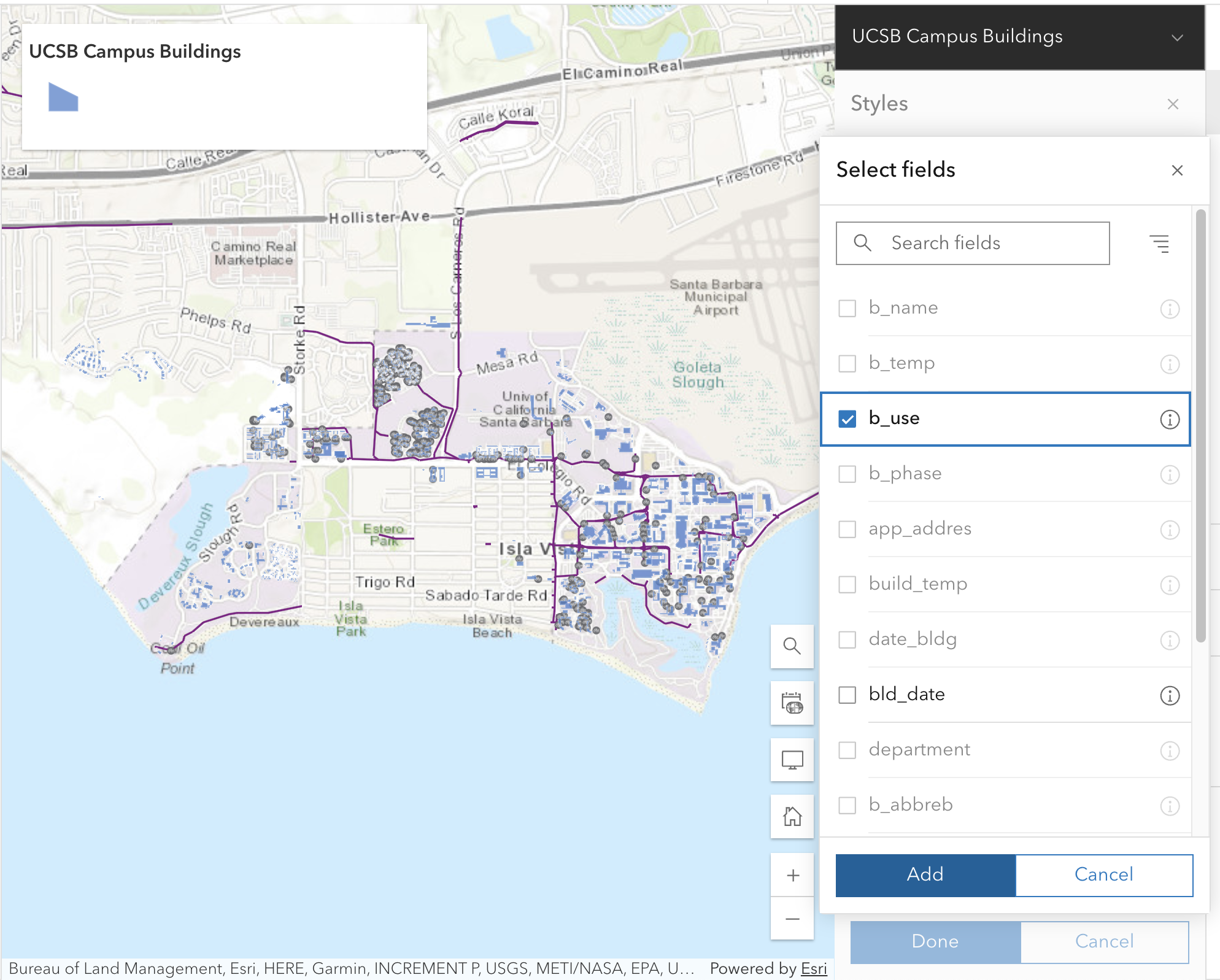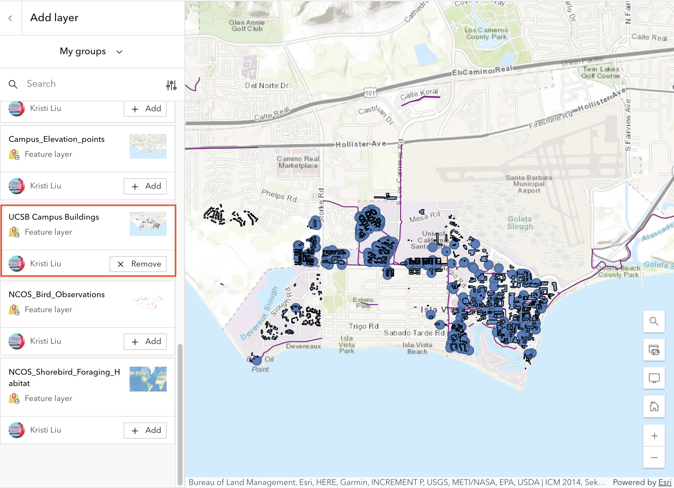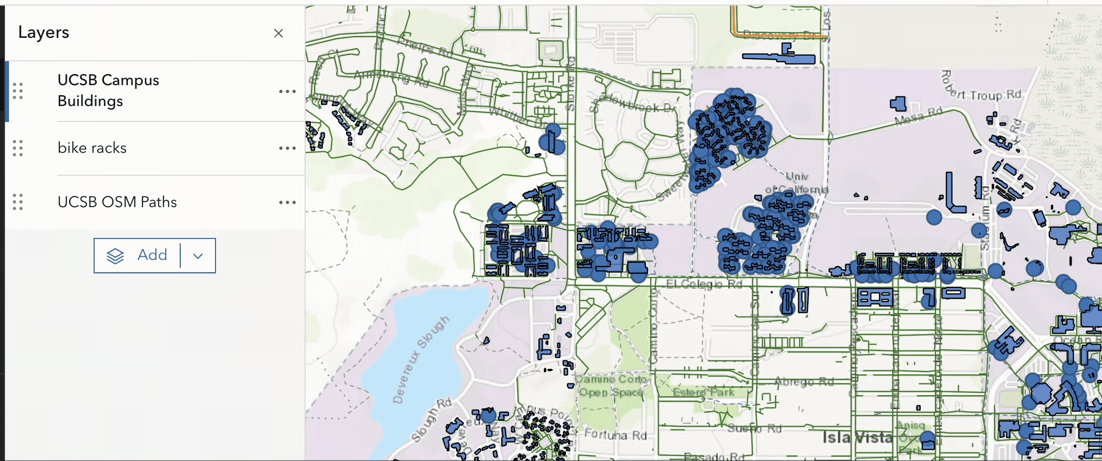 - Add feature layers from the UCSB campus