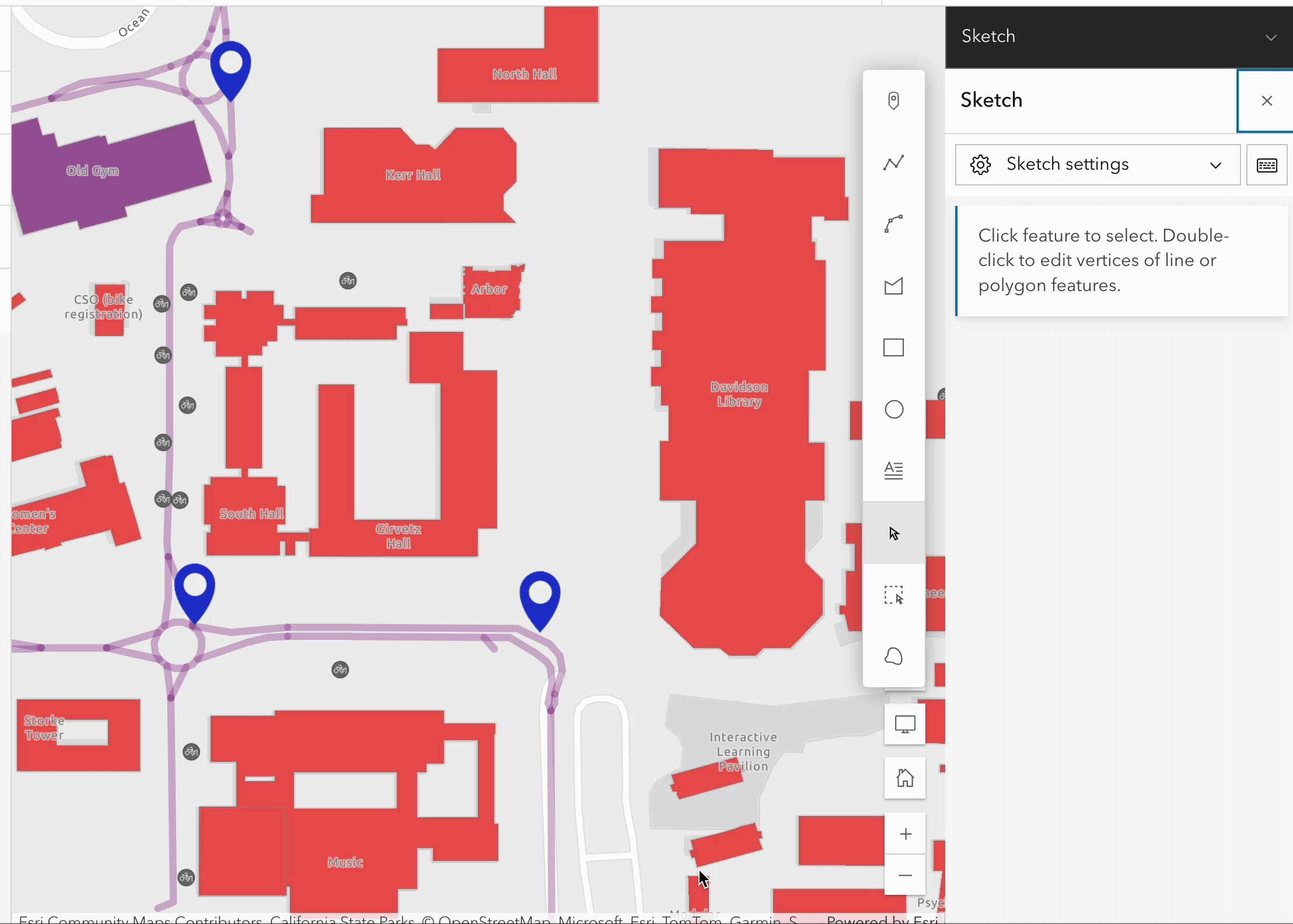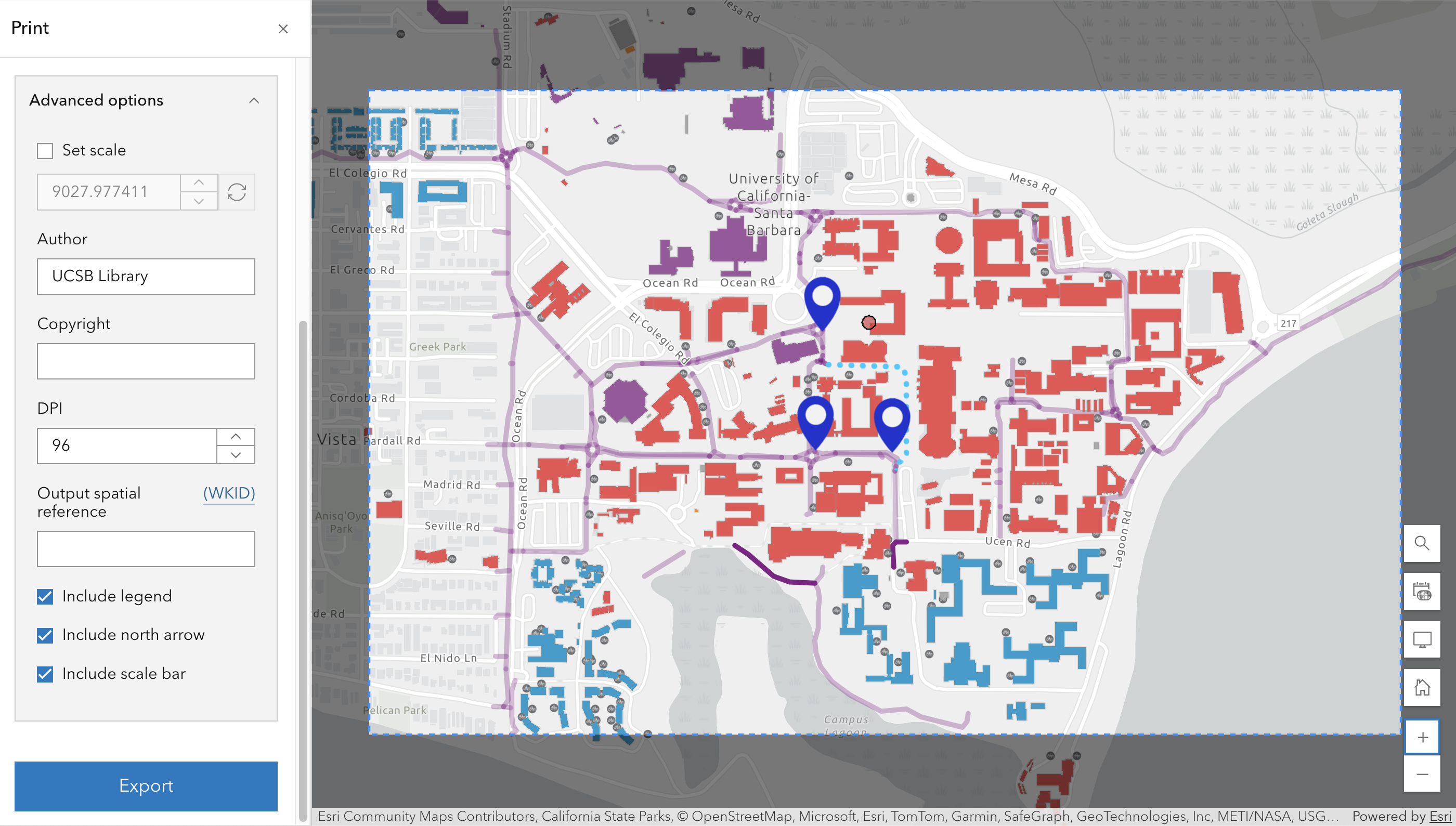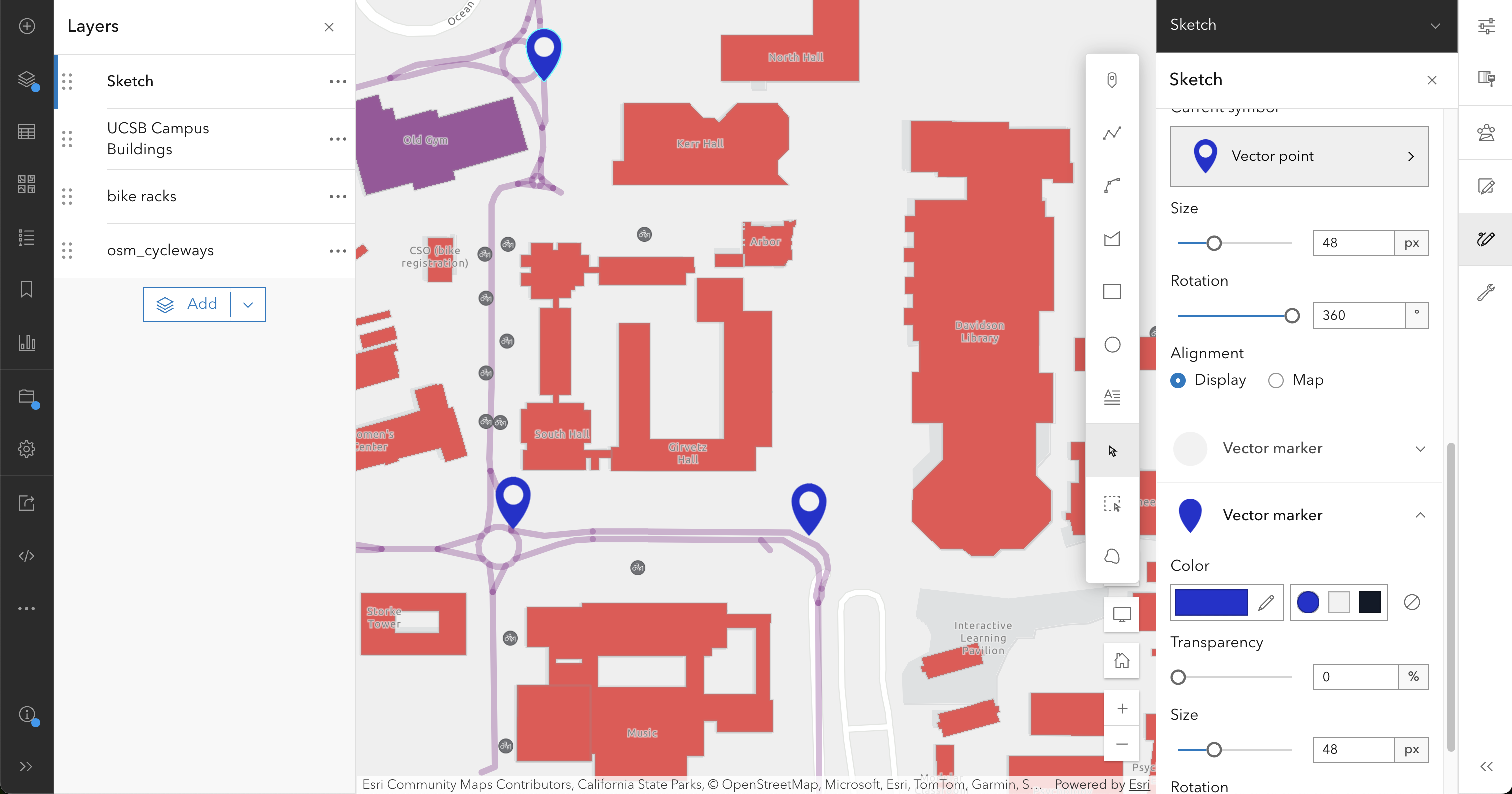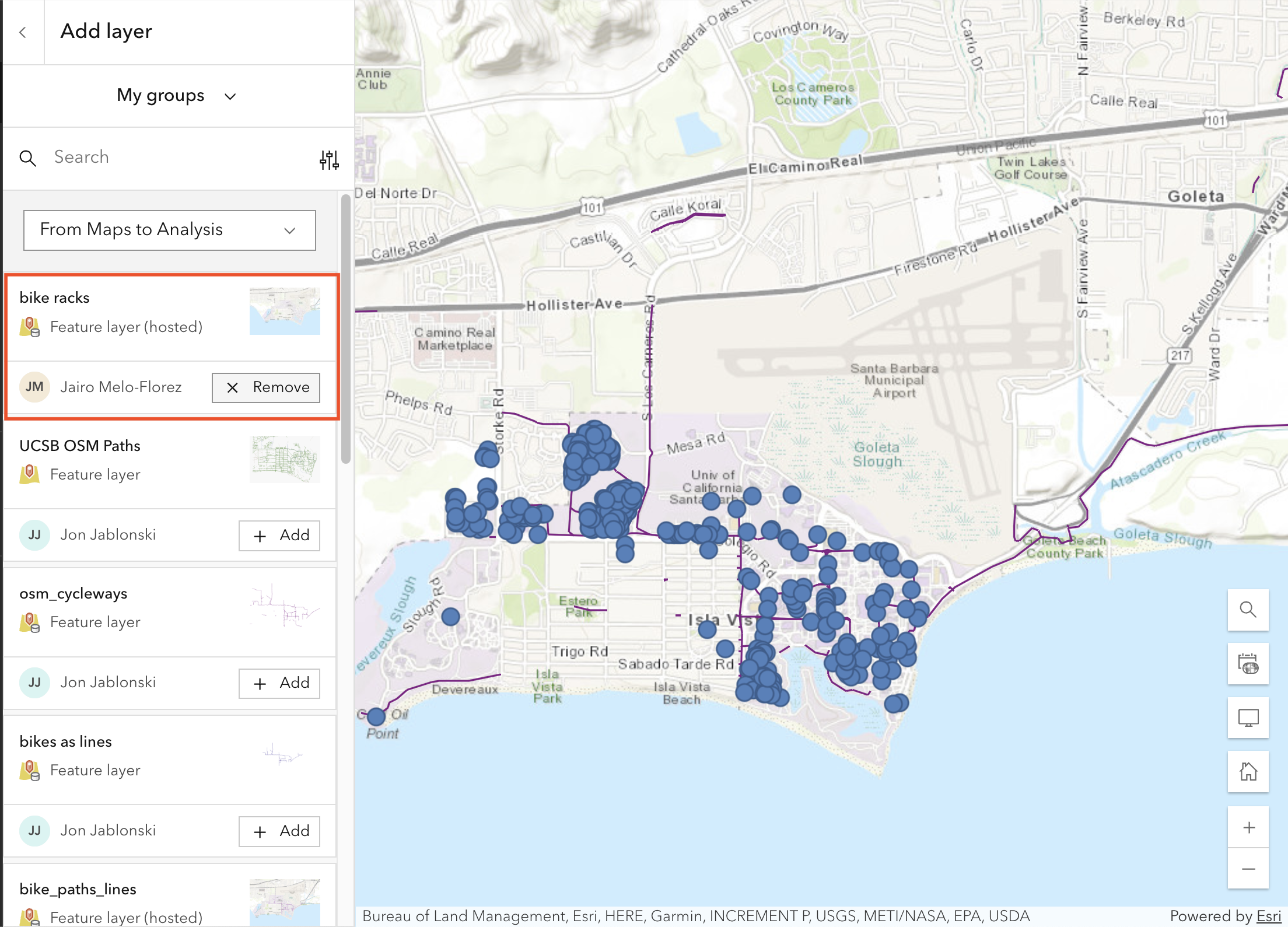 - Add feature layers from the UCSB campus