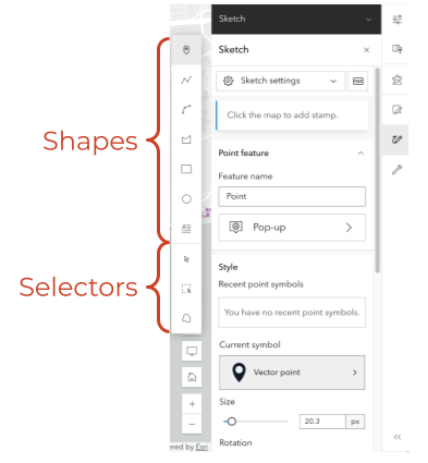 After adding the sketch layer to your workspace, a new menu will appear in the right column with drawing tools and configuration options.