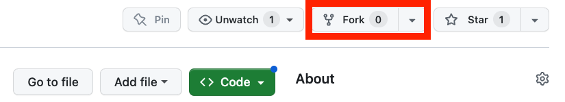 - Create a Fork by clicking on the Fork button on the top right view of your repository homepage