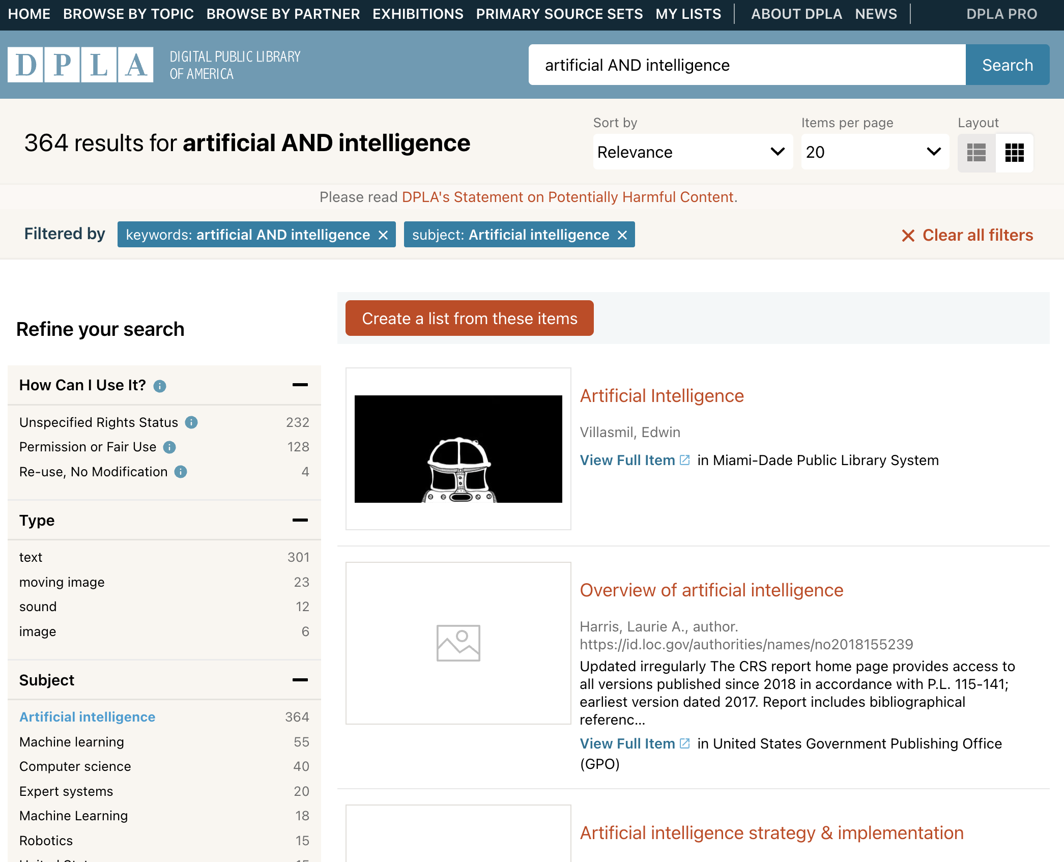 Search results for “artificial AND intelligence” in the DPLA