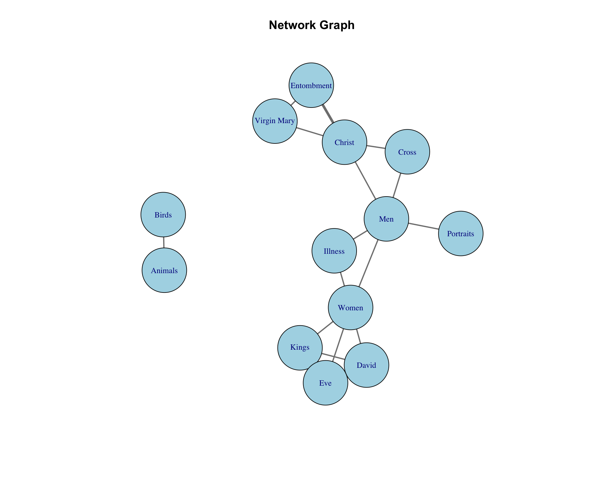 This simple network graph provides a glimpse of the relationships between terms. For instance, we can see how the network is highly centered around the term “Men,” which connects with other groups associated with “Christ.” In contrast, “Women” is part of a smaller group tied to terms like “Eve,” “David,” and “Kings.” While this is just a small sample, it demonstrates how network analysis can reveal thematic patterns.
