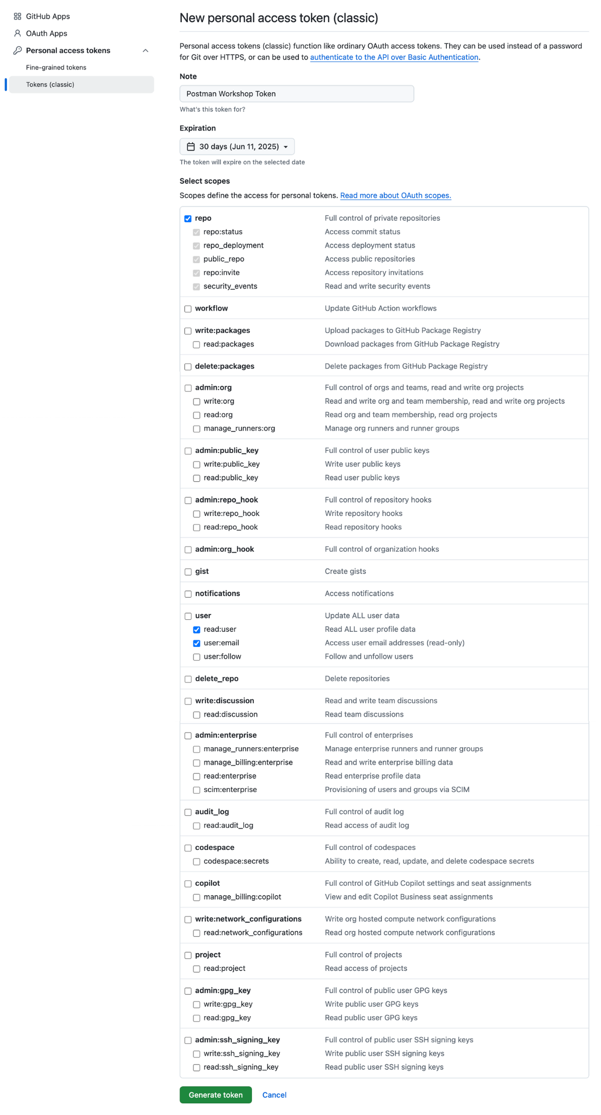 - Click the Generate new token (classic) button.