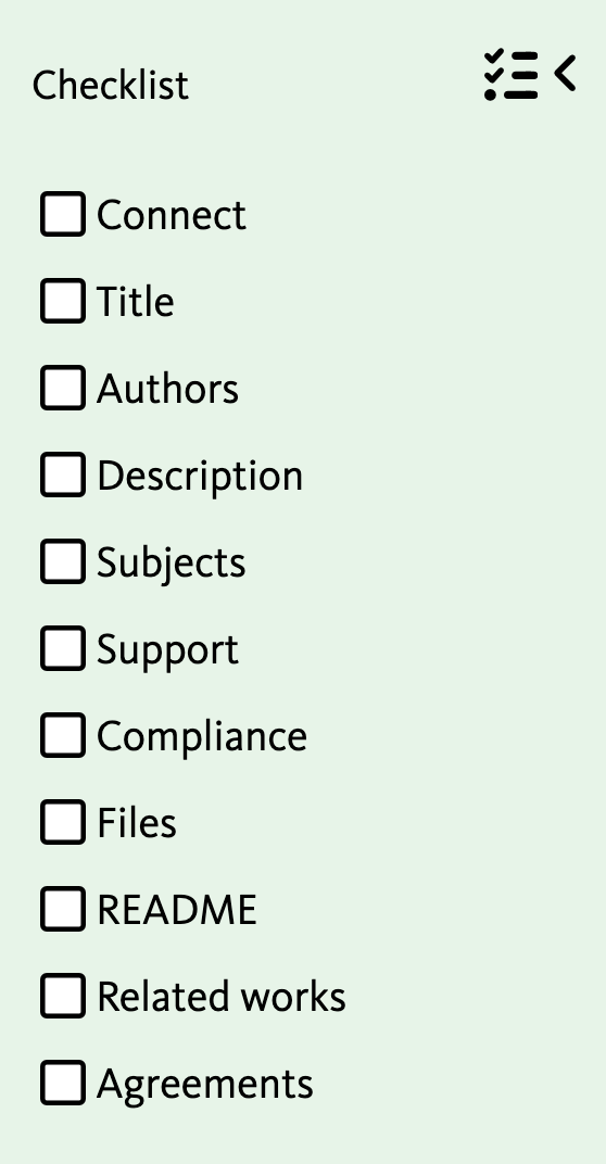 You will now have to fill out the web form to provide project-level informationfollowing the checklist preserented in the left panel