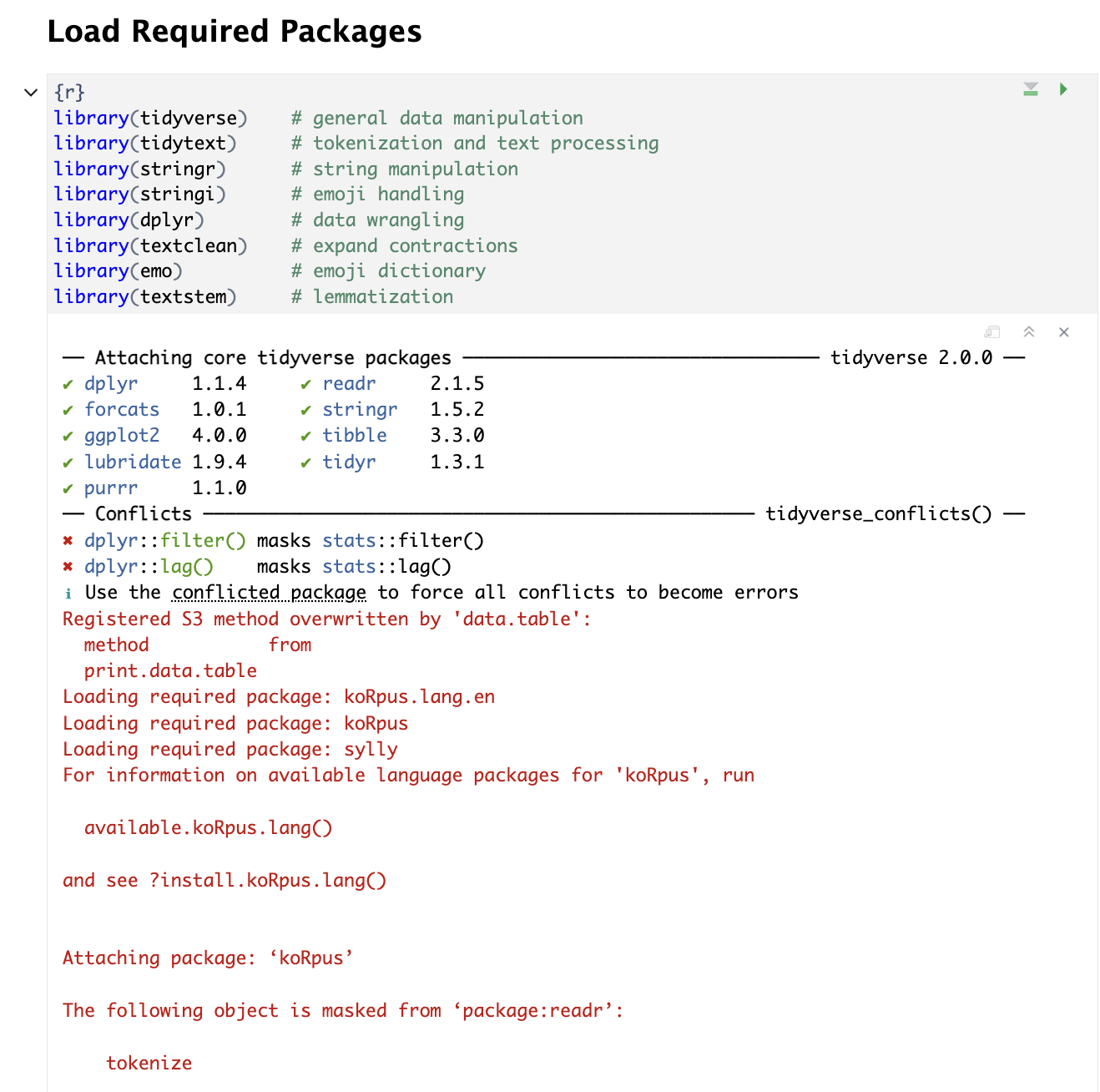 library(textstem)     # lemmatizationAfter running it, you should get: