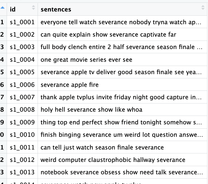 Wait a second! If we look closely, we’ll notice an outlier lemma. Do you see the number two in the third row? This is a known issue with the textstem package. While it hasn’t been fully resolved yet, we can apply a workaround to address it: