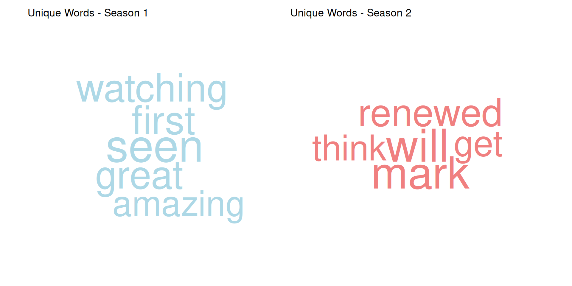 This analysis allows us to see which words are more prominent in each season, providing insights into the themes and topics that were more relevant during those times.