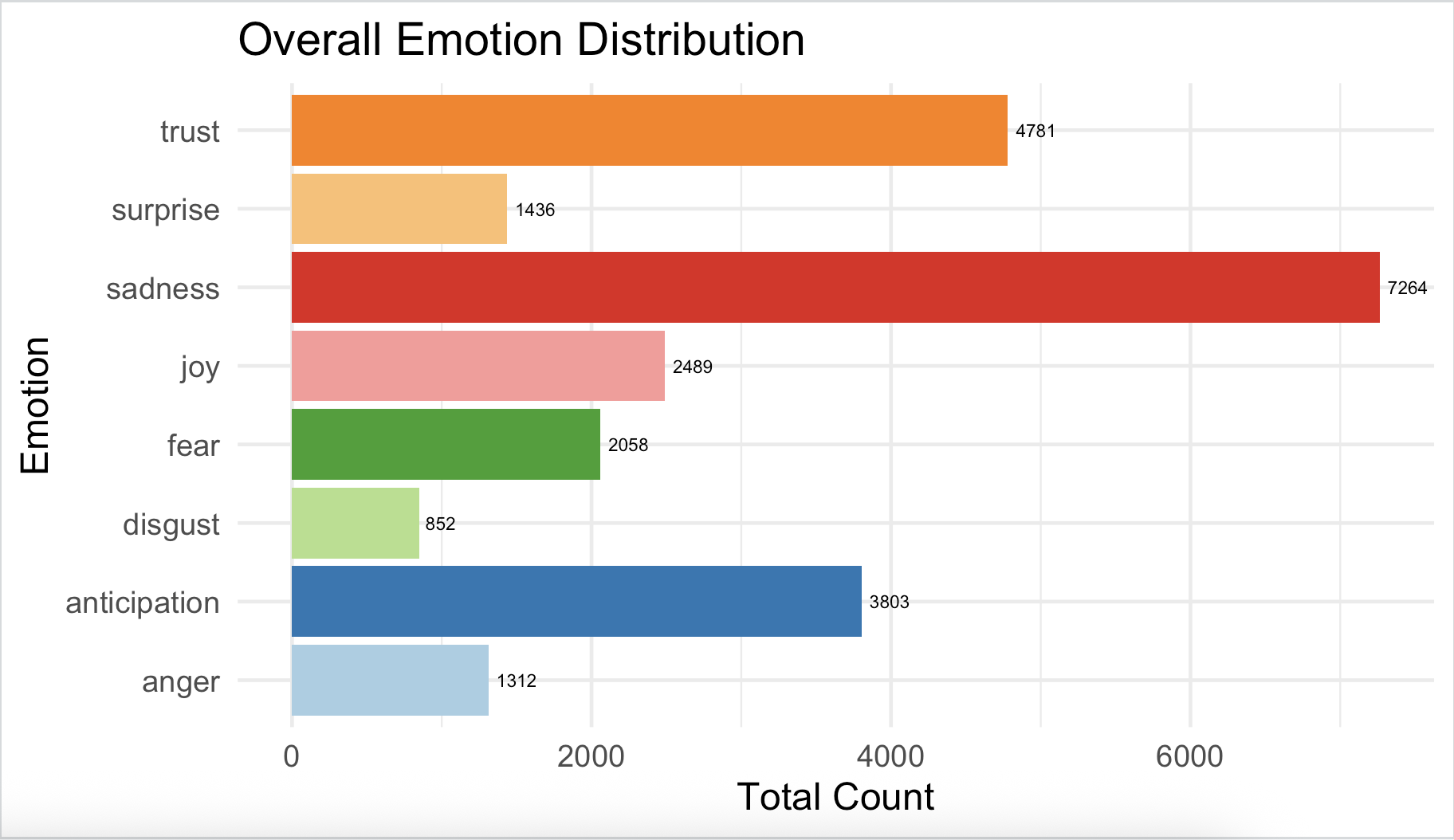 Now, let’s count how many times each emotion appears overall.
